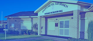 The final artwork features a photographic image of the Shortland RSL building, creating a strong visual connection to the organisation and its community.